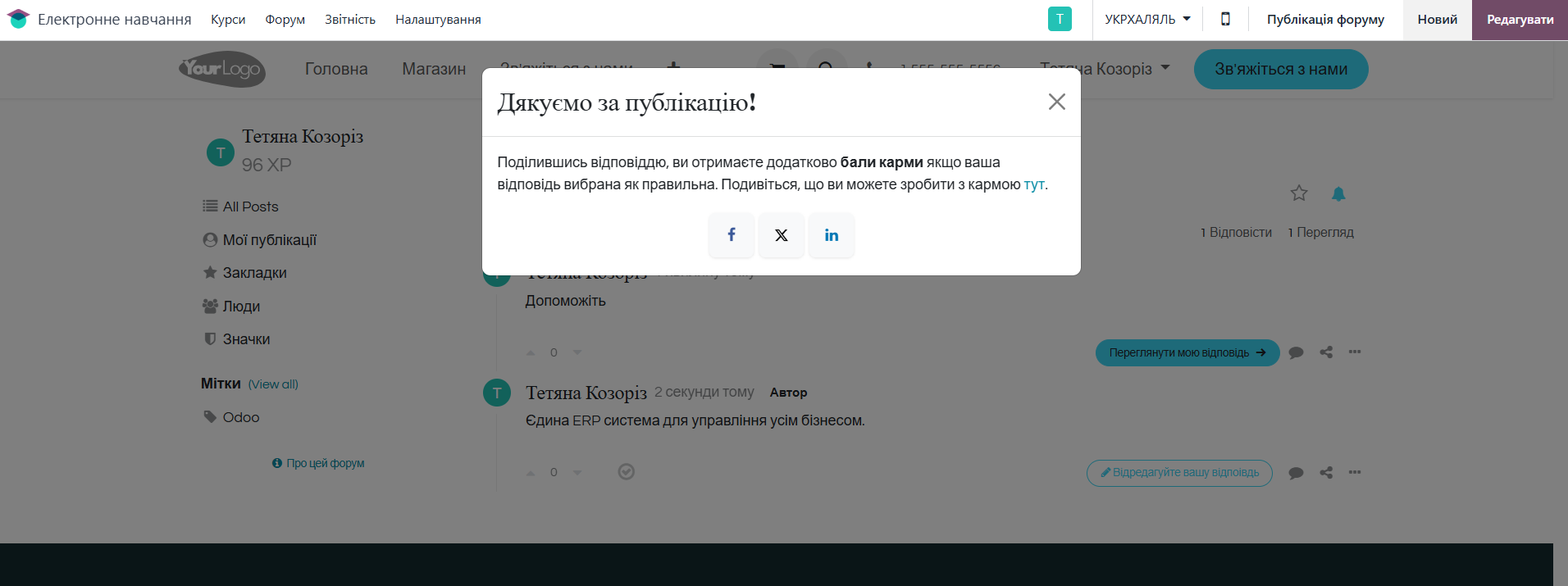 Інтеграція модуля «Форум» з іншими модулями Odoo