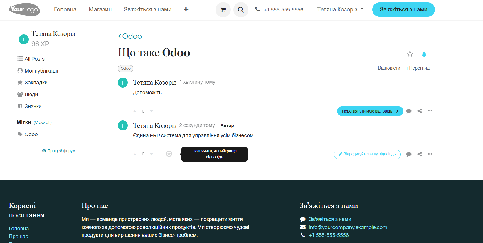 Odoo ERP та модуль «Форум» — це сучасне рішення для побудови спільноти, підтримки клієнтів і автоматизації комунікацій.